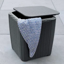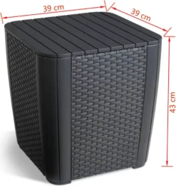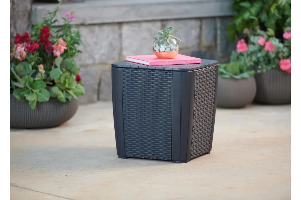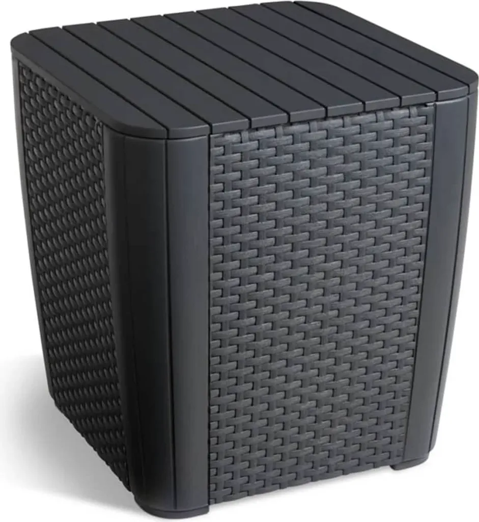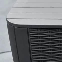 Allibert By Keter Gartentisch Luzon Flat Wicker, Graphit, Deckel Abnehmbar, Mit Stauraum, Kunststoff, Flache Rattanoptik
