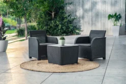 Allibert By Keter Gartentisch Patio Umbrella Luzon Plus, Graphit, Inkl. Loch FĂĽr Schirm, Deckel Abnehmbar, Mit Stauraum, Kunststoff, Flache Rattanoptik