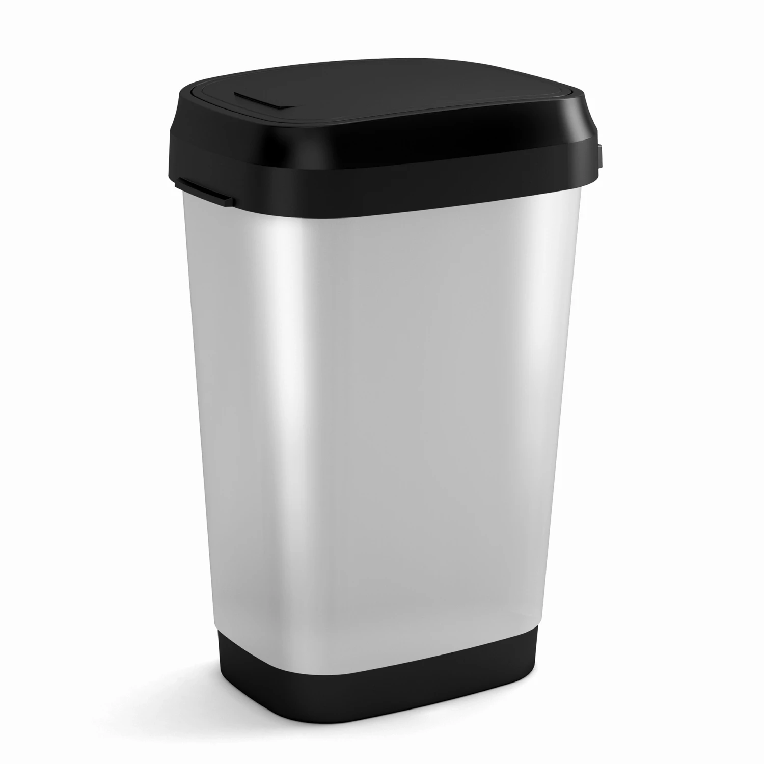 Der Abfalleimer ‚Dual Swing Style‘ verfügt über zwei Öffnungsmöglichkeiten: als Swingeimer-Öffnung oder als Klappdeckel mit kompletter Öffnung. Die schmale, eckige Form ermöglicht platzsparendes Müllsammeln. Durch den breiten Deckelrand lassen sich Mülltüten elegant verdecken. Ideal als Abfallbehälter am Schreibtisch, in der Küche, im Bad oder öffentlichen Räumen.