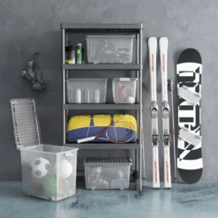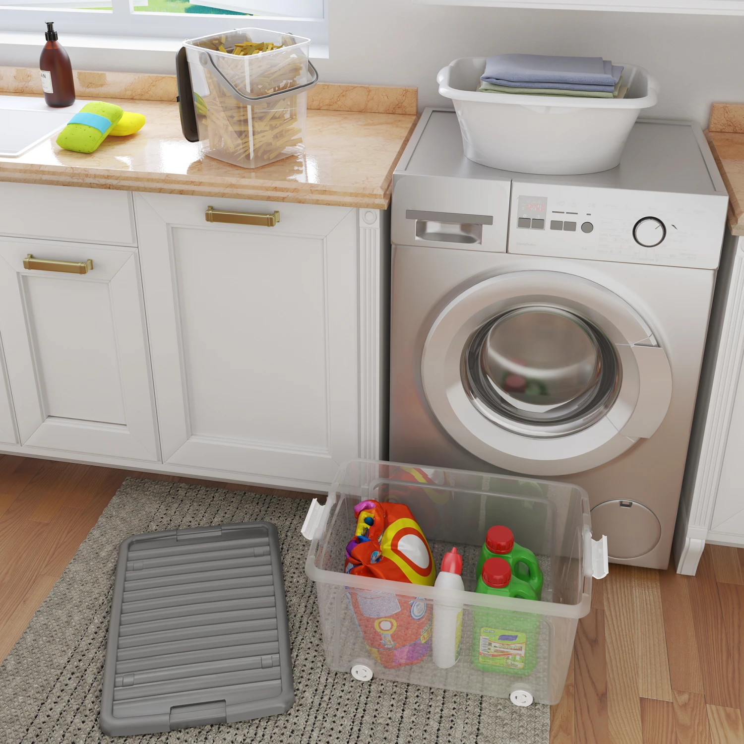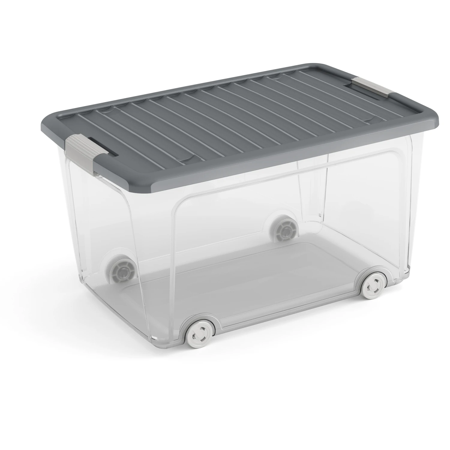 Multifunktionale Aufbewahrungsbox aus transparentem Kunststoff, mit Deckel.