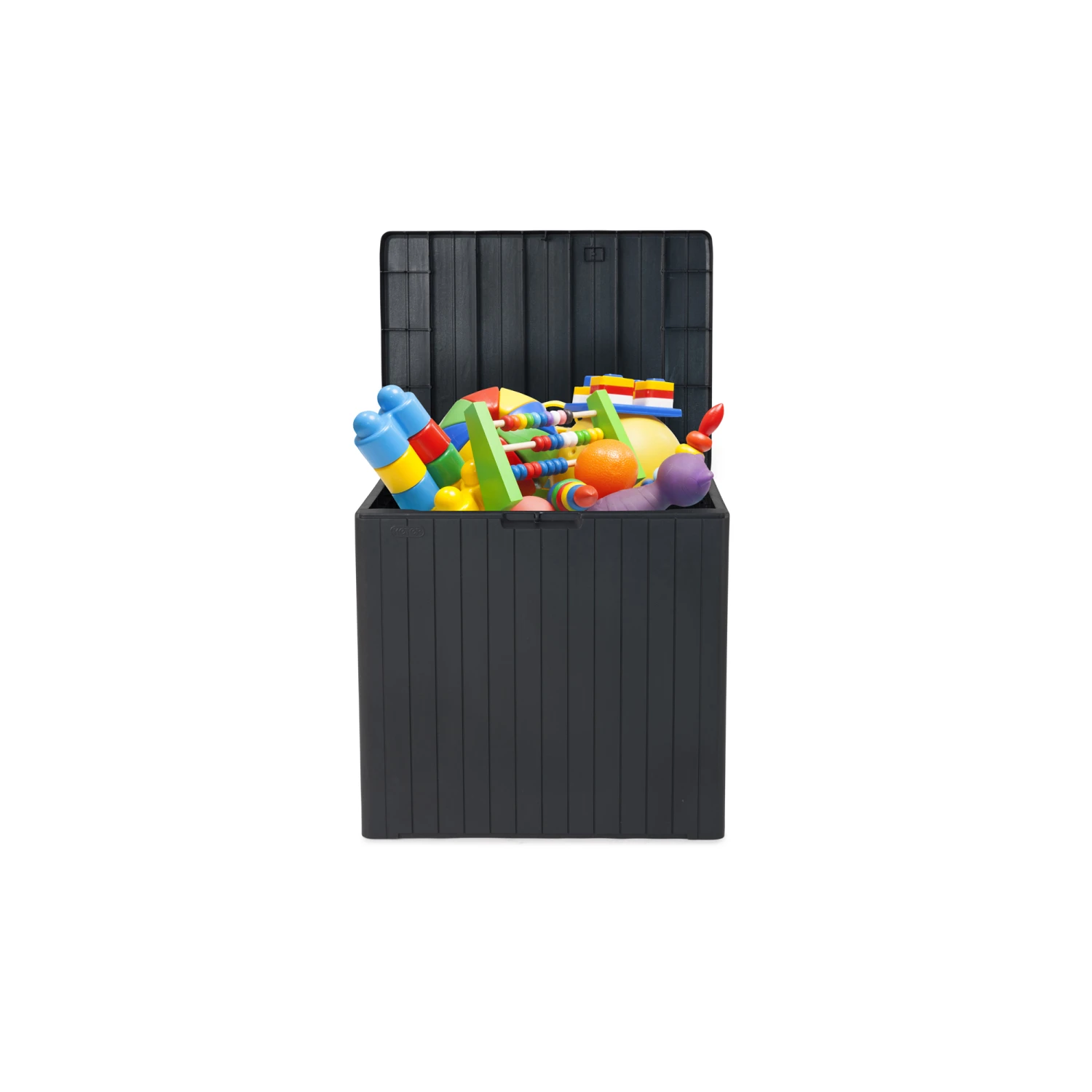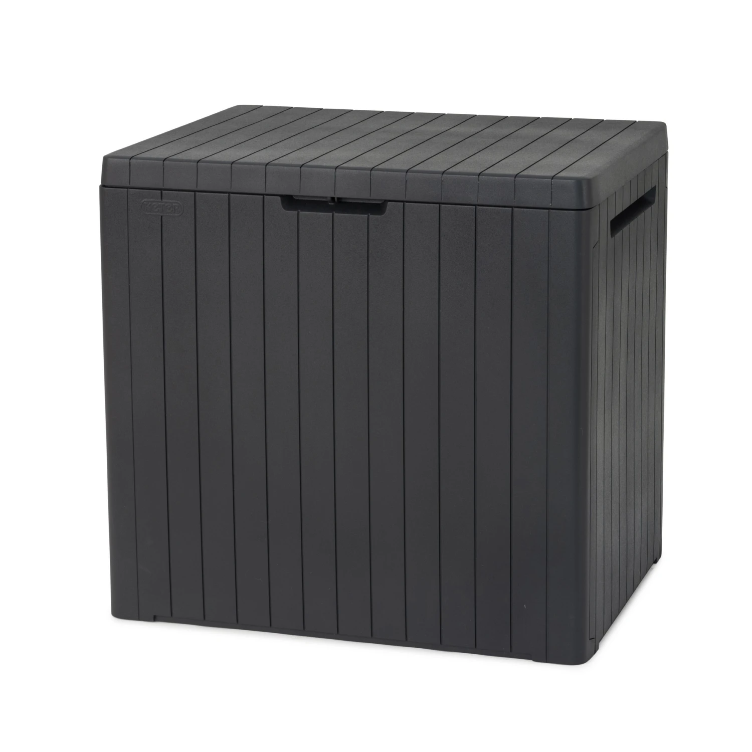 Die nützliche und vielseitige Aufbewahrungsbox ‚City Box‘ der Marke Keter bietet dank seines Nutzinhaltes von 113 Liter viel Platz für deine Gartenutensilien. Das witterungsbeständige Material aus hochwertigem Polypropylen sorgt für einen trockenen und belüfteten Inhalt. Die nützliche Box ist platzsparend und ideal für Garten und Balkon geeignet.