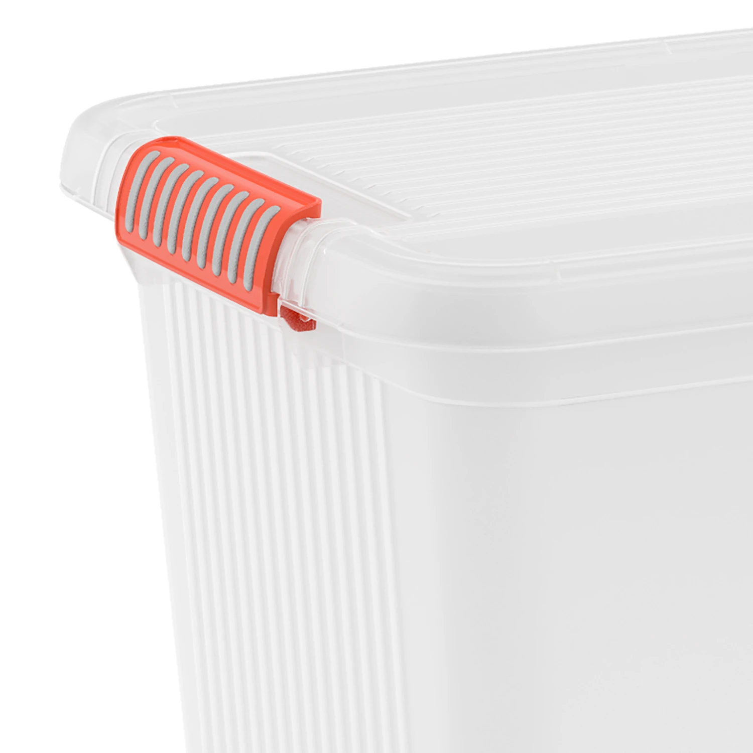Die Aufbewahrungsbox ‚K Latch‘ ist robust und stoßfest. Sie ist mit ergonomische Verschlussgriffen und Rollen ausgestattet. Sie ist vielseitig einsetzbar und kann z.B. als Aufbewahrungsbox oder Transportbox verwendet werden.