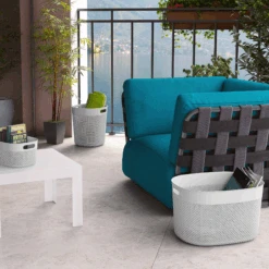 Der dekorative Aufbewahrungskorb ‚Filo‘ ist mit bequemen Tragegriffen ausgestattet. Er ist ineinander stapelbar und eignet sicht gut für die Aufbewahrung in Wohnzimmern, Schlafzimmern, Badezimmern und Büros.
