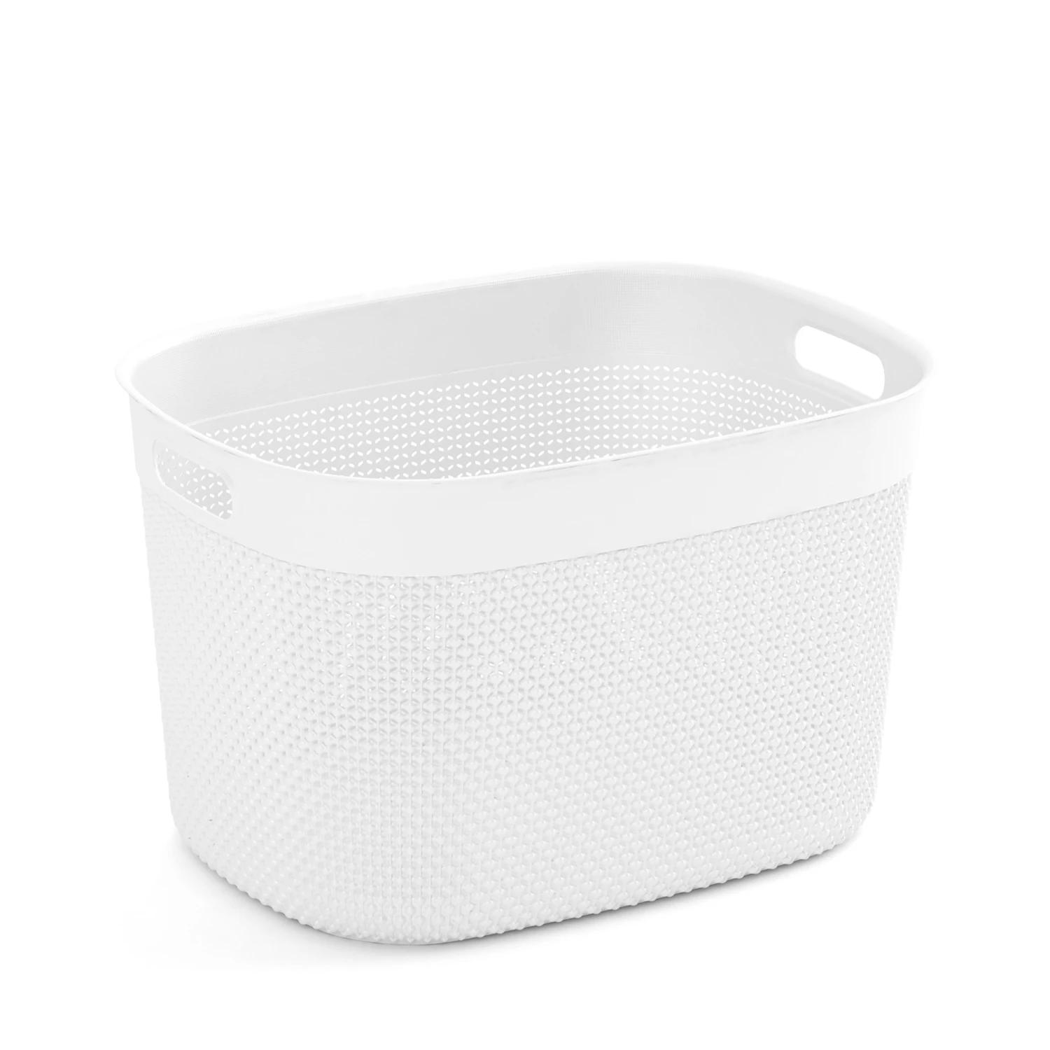 Der dekorative Aufbewahrungskorb ‚Filo‘ ist mit bequemen Tragegriffen ausgestattet. Er ist ineinander stapelbar und eignet sicht gut für die Aufbewahrung in Wohnzimmern, Schlafzimmern, Badezimmern und Büros.