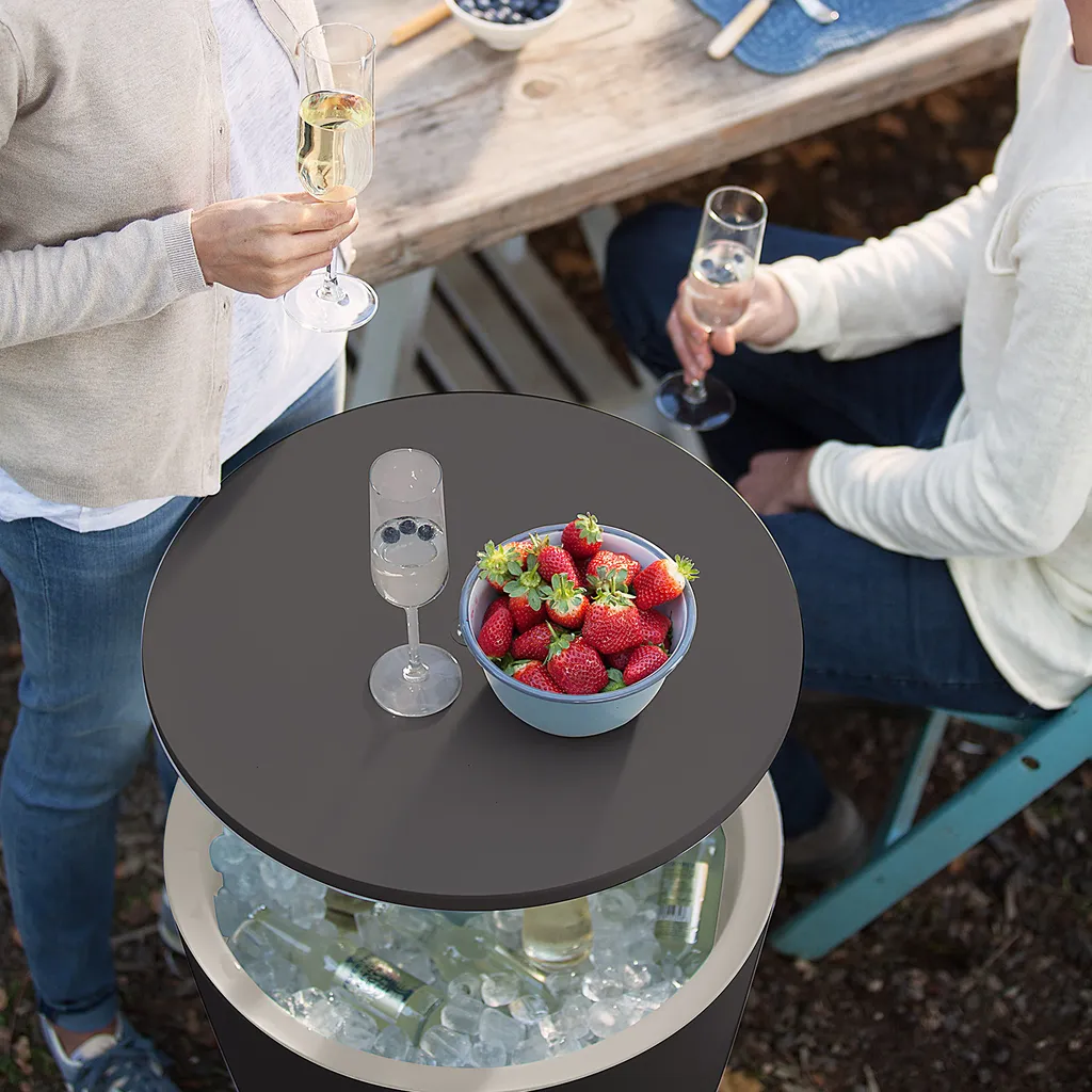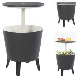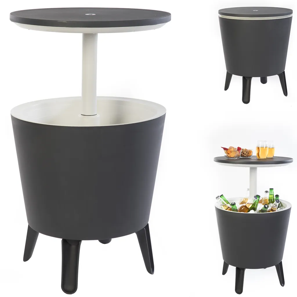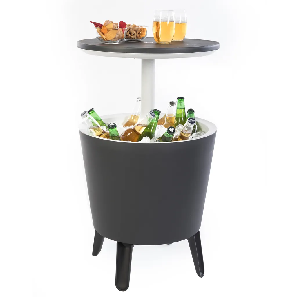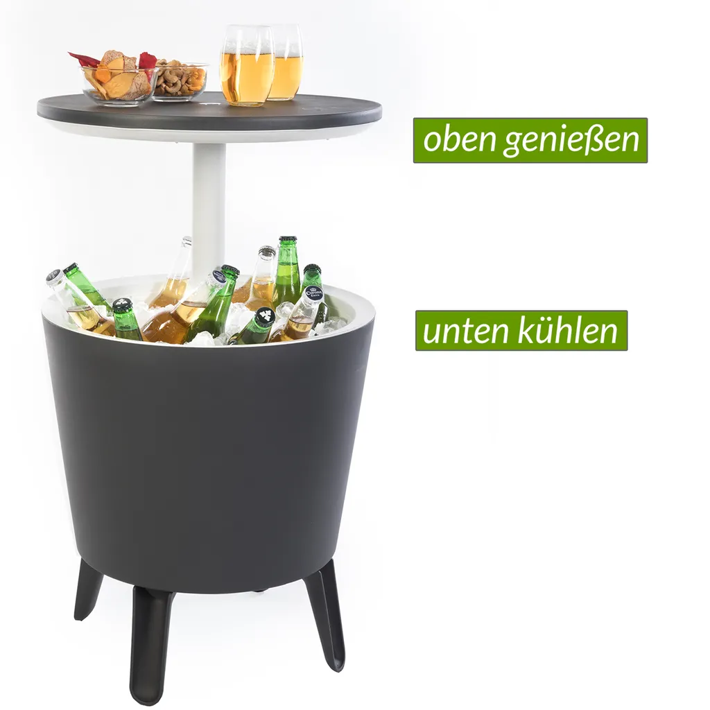 Keter Beistelltisch Getränkekühler Cool Bar Cocktailtisch Partytisch Stehtisch Garten Balkon 50×57-85 Cm 30 L , Farbe:anthrazit – Weiß