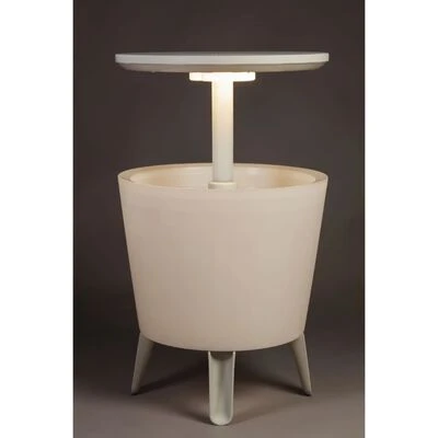 Die beleuchtete Kühlbar ist sowohl ein trendy-aussehender Cocktail-Tisch als auch ein praktischer Getränkekühler bei Barbecues und anderen Anlässen im Freien.