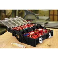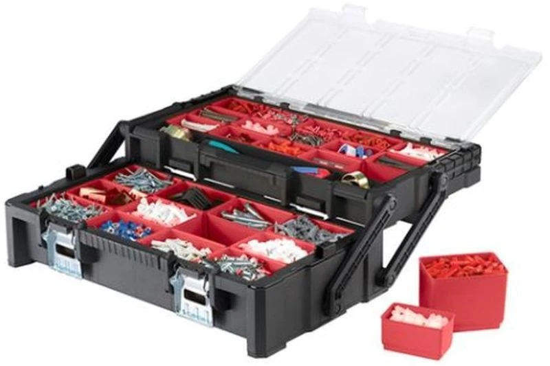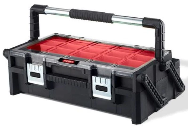 Mit der Werkzeugkiste CANTILEVER 22″ von Keter haben Sie Ihre Werkzeuge und Schrauben ordentlich und übersichtlich auf 2 Ebenen gelagert und immer sofort griffbereit! Dies erspart Ihnen mühsames Suchen und das Tragen verschiedenster Kisten. Dieser schicke Sortierkasten ist nicht nur für Heimwerker geeignet!