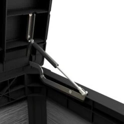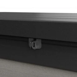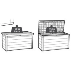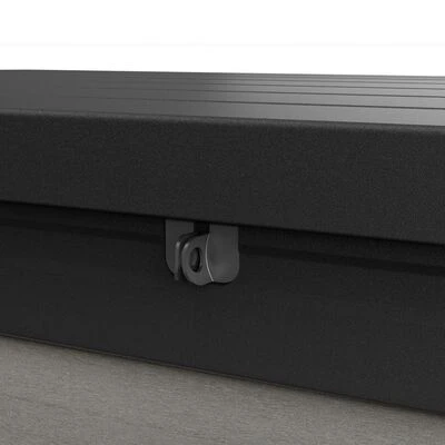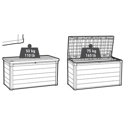 Diese attraktive Gartentruhe hat ein beeindruckendes Fassungsvermögen von 757 Litern. Dank ihres robusten Deckels dient sie auch als Sitzbank für bis zu zwei Erwachsene. Der Deckel ist mit praktischen Gasfedern ausgestattet, die das Öffnen und Schließen vereinfachen und sicherer machen; die Kissenbox kann außerdem mit einem Vorhängeschloss (nicht im Lieferumfang enthalten) verschlossen werden.