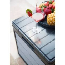 Sie ist die perfekte Kombination aus innovativer Technologie, intelligenter Technik und besonderen Materialien – ein Durchbruch bei Outdoor-Produkten! Diese attraktive Outdoor-Aufbewahrungsbox hat ein beeindruckendes Fassungsvermögen von 113 Litern und einen superstarken Deckel. Der Deckel ist mit praktischen Gasdruckfedern ausgestattet, die das Öffnen und Schließen einfach und sicher machen, und kann mit einem Vorhängeschloss verschlossen werden (Vorhängeschloss ist nicht im Lieferumfang enthalten).