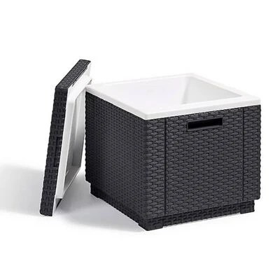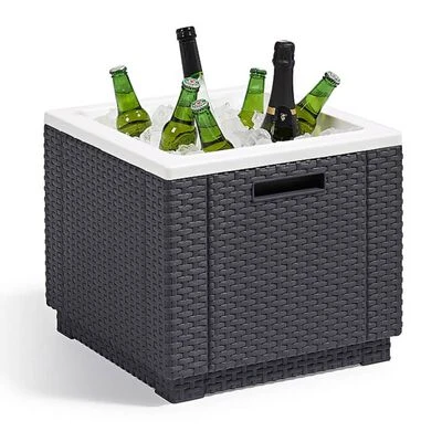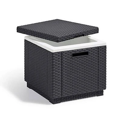 Diese Kühlbox kann zudem als Beistelltisch oder als Ottomane verwendet werden. Die Kühlbox hat eine attraktive Rattanoptik, die zu zahlreichen Wohnzimmereinrichtungen passt. Dank der praktischen Griffe, ist sie einfach zu bewegen.