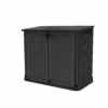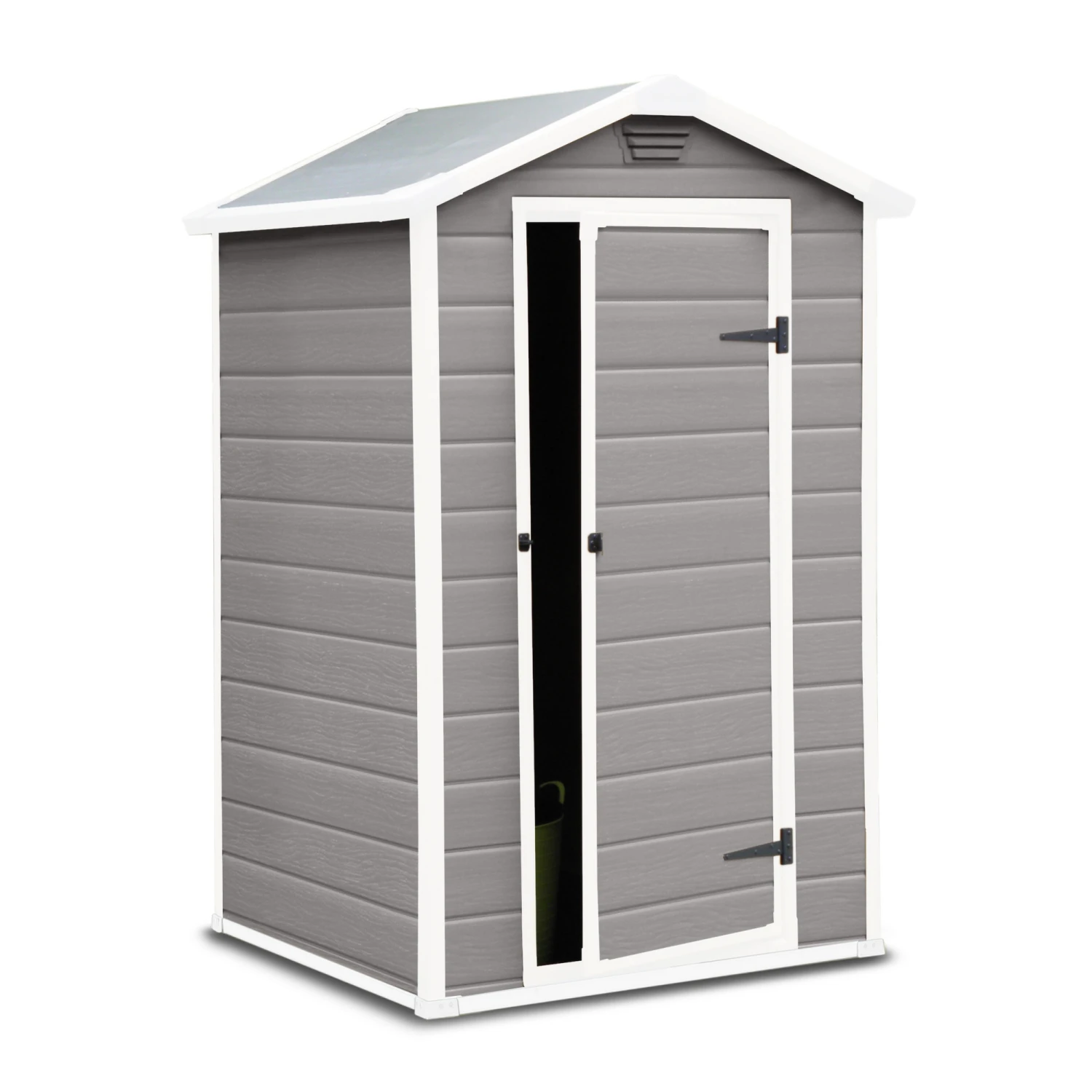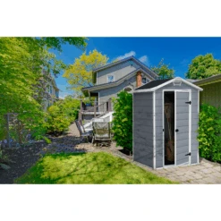 Gemeinsam Zeit im Garten zu verbringen heißt Lebensqualität in aufgeräumter Atmosphäre. Das Kunststoff-Gerätehaus ‚Manor‘ bietet dir eine optimale Stauraum-Möglichkeit. Es wartet auf mit einer geräumigen Fläche, um alle deine Gartenutensilien vor Wind und Regen zu schützen. Dennoch nimmt es durch seine kompakte Größe nicht zu viel Platz im Freien ein. Mit dem klassischen Design und der extremen Stabilität ist es die perfekte Aufbewahrungslösung. Die Tür unterstreicht den praktischen und zweckdienlichen Charakter. Die besonderen Eigenschaften des Kunststoffmaterials des Hauses verschaffen langjährige Begeisterung ohne jeglichen weiteren Arbeitsaufwand. So hast du eine komfortable Lagerlösung, die sich wunderbar in den Garten integriert. Das Haus lässt sich zudem auch abschließen (Schloss nicht im Lieferumfang enthalten).