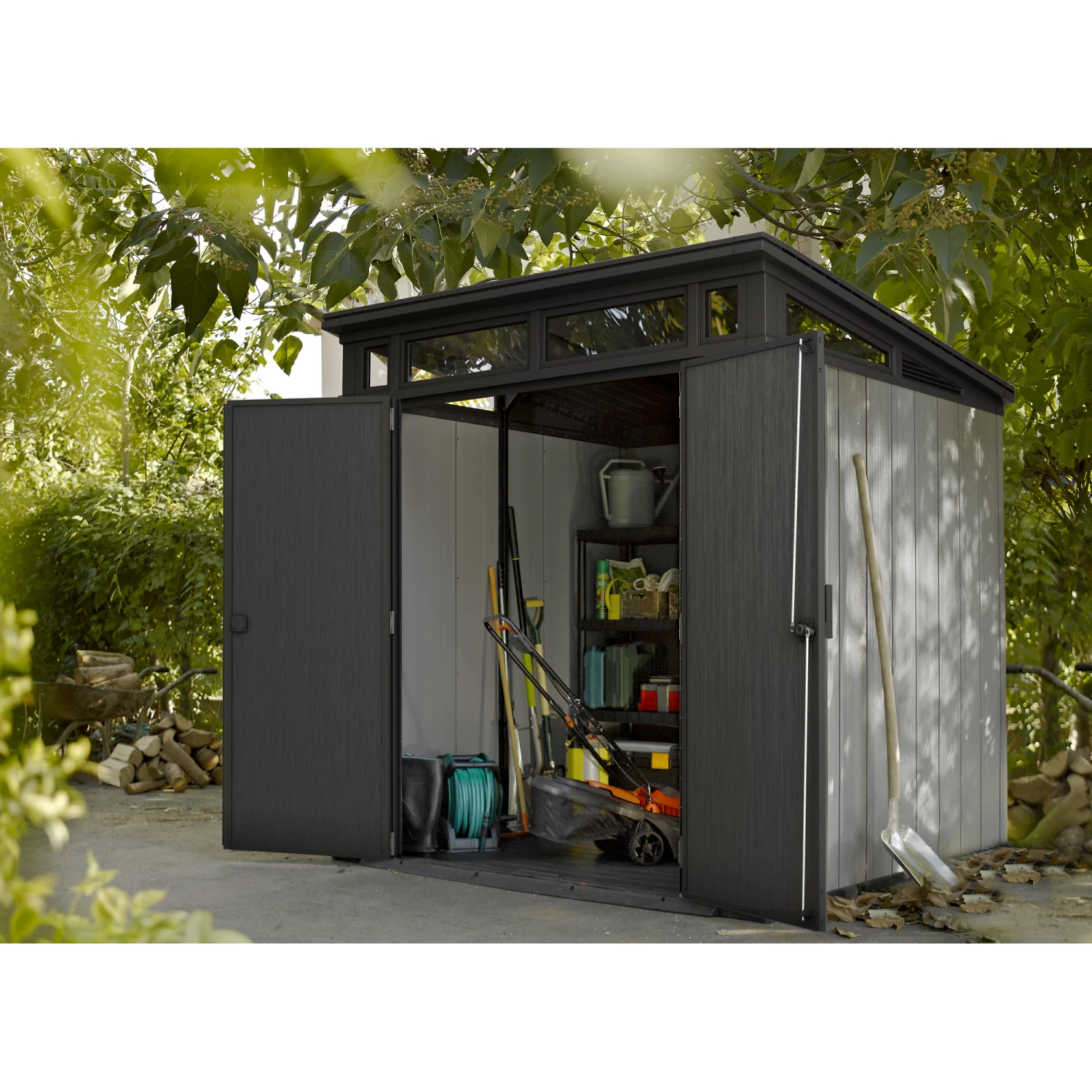 FĂŒr sein Hobby ausreichend Platz zu haben bedeutet LebensqualitĂ€t fĂŒr jeden, der gerne im Garten arbeitet oder SpaĂ am Handwerkeln hat. Mit dem GerĂ€tehaus ‚Artisan‘ kommt jeder auf seine Kosten. Es besteht aus hochwertigem DUOTECHâą Material, welches vor allem durch seine natĂŒrlich raue Holzoptik besticht. Das speziell entwickelte DOUTECHâą Material ist nicht nur langlebiger, sondern auch wartungsarmer als ein Naturholzprodukt und wird zum Blickfang in jedem Garten. Wer das Artisan-Haus farblich individuell verĂ€ndern möchte, kann es problemlos in der gewĂŒnschten Farbe anstreichen. So bietet das DUOTECHâą-Material Gestaltungsfreiraum fĂŒr jeden Geschmack. Eine besonders schnelle Montage wird durch die vorgeschnittenen Nut-Feder-Paneele des Artisan-Hauses möglich. Das Pultdach unterstreicht den praktischen und zeitgemĂ€Ăen Charakter. Durch die groĂzĂŒgigen DoppeltĂŒren können sogar sperrige GegenstĂ€nde im Haus verstaut werden. Eine optimale Tageslicht-Beleuchtung im Inneren des Hauses entsteht durch das moderne Lichtband. Somit machen selbst kleinteilige Arbeiten im Artisan viel SpaĂ. Auch der Sicherheitsaspekt wurde nicht auĂer Acht gelassen: Das TĂŒrverschlusssystem aus Edelstahl bietet Schutz fĂŒr den gesamten Inhalt des Kunststoffhauses (Schloss nicht im Lieferumfang enthalten). Das Artisan-Haus vereint hohe StabilitĂ€t mit einem auĂergewöhnlichen, naturnahen Design. Es ist die perfekte Wahl fĂŒr jeden, der viel Freude an der individuellen, farblichen Gestaltung des Hauses hat.