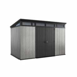 Das GerĂ€tehaus der Firma Keter ist 342 x 218 x 226 cm groĂ und bietet so ausreichend Platz fĂŒr verschiedene GerĂ€tschaften, Werkzeuge oder Gartenmöbel. Diese werden so effektiv vor Wind und Wetter geschĂŒtzt. Da seine TĂŒren sich bei Bedarf abschlieĂen lassen, musst du dir auch keine Gedanken darĂŒber machen, dass deine Habseligkeiten abhandenkommen. Beachte jedoch, dass im Lieferumfang kein Schloss enthalten ist.