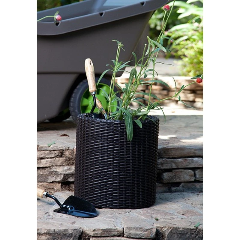 Der Pflanzkübel Cylinder L hat eine klassische zylindrische Form und besteht aus geformtem Kunststoff mit einem Rattandesign, das resistent gegen Beschädigungen ist. Der Pflanzkübel hat eine robuste Konstruktion und ein Drainagesystem, das überschüssiges Wasser ableitet. Dieses Pflanzgefäß wird daher auch den anspruchsvollsten Nutzern gefallen, und seine Vielseitigkeit macht es zu einer guten Wahl für jeden Garten, jede Terrasse und jeden Balkon.