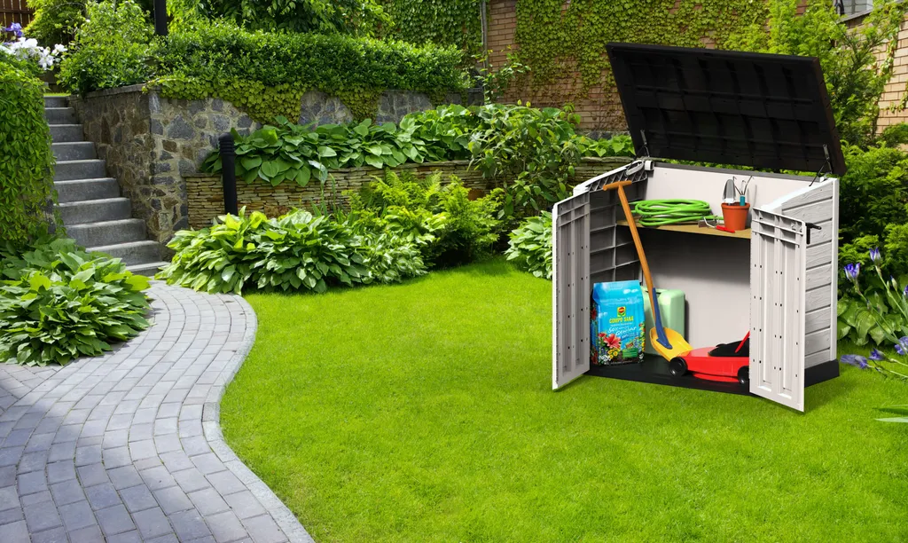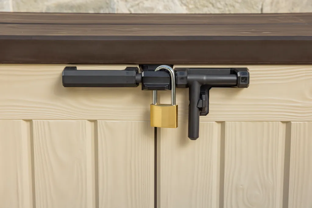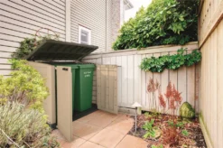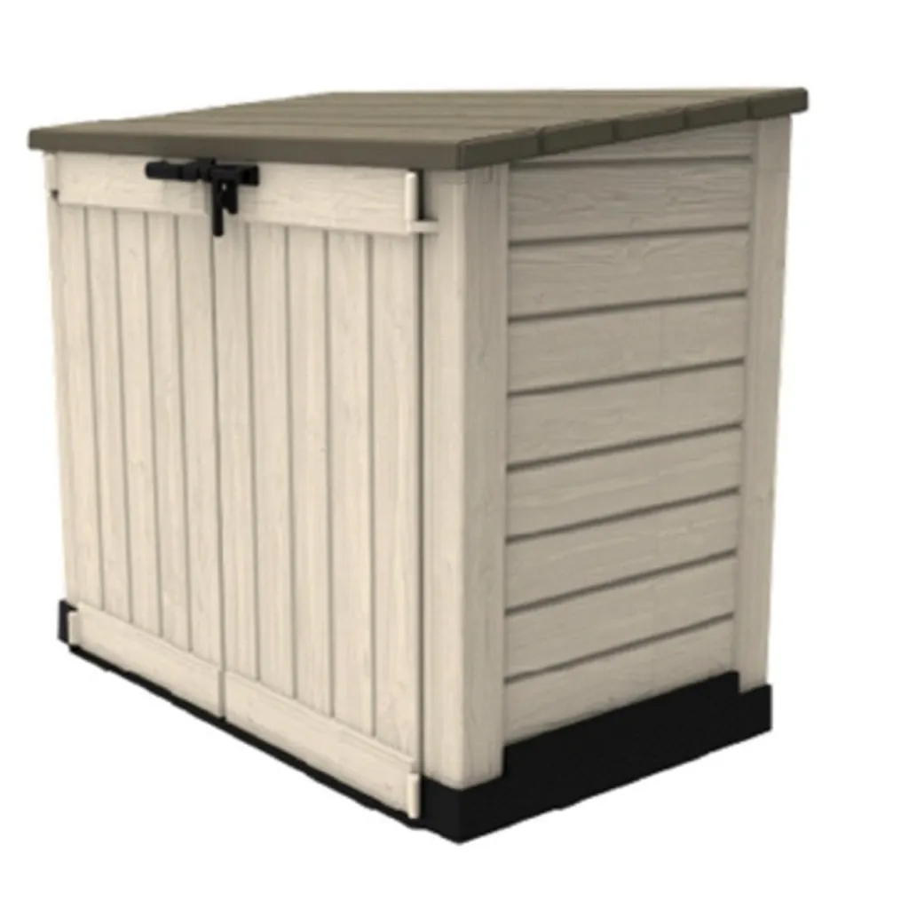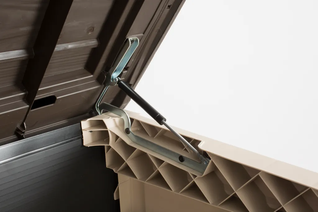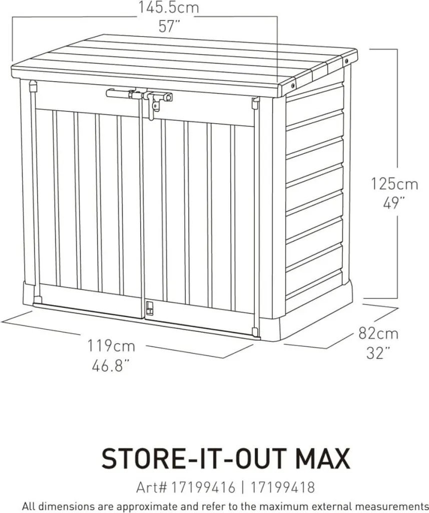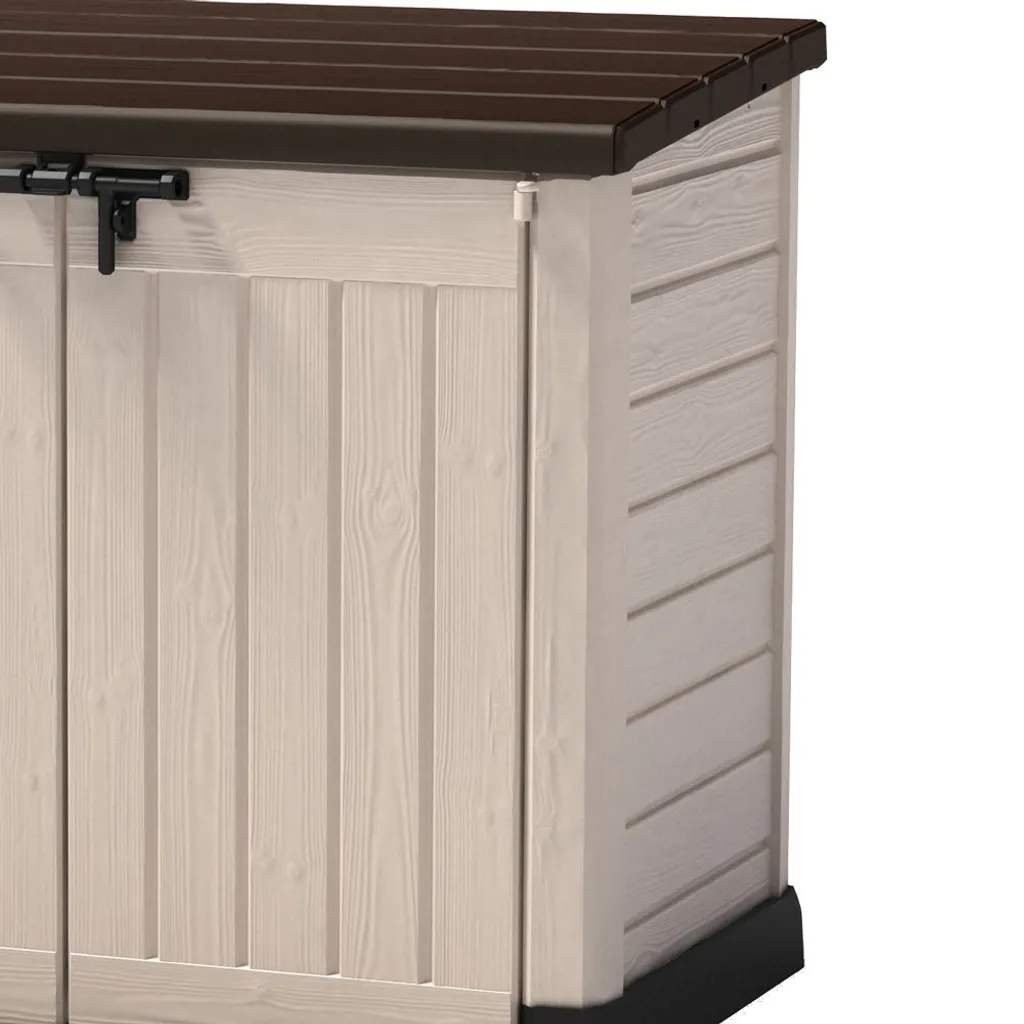 Keter Store It Out Max Mülltonnenbox Mit Gasdruckfeder, Wetterfest, Abschließbar, Beige, 1.200 L, 145,5 X 82 X 125cm