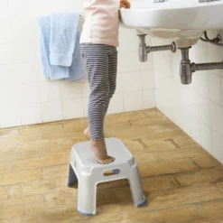 ‚Step Stool‘ ist ein moderner und funktional gestalteter Hocker, der vielseitig einsetzbar ist. Er verfügt eine extra breite Oberseite, hat bis zu 150 kg Tragkraft und Anti-Rutsch-Gummifüße. Die integrierten Griffe erleichtern das tragen. Ob im Bad- oder Kinderzimmer, in der Garage oder im Outdoorbereich, dieser Mehrzweck-Tritthocker kann überall eingesetzt werden. Das funktionnelle und moderne Design erhöht die Stabilität und garantiert eine sichere und komfortable Nutzung.n